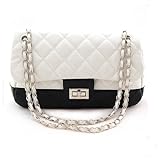 Designer Faux Leather Quilted Chain 2 Tone Black & White Shoulder Handbag Purse